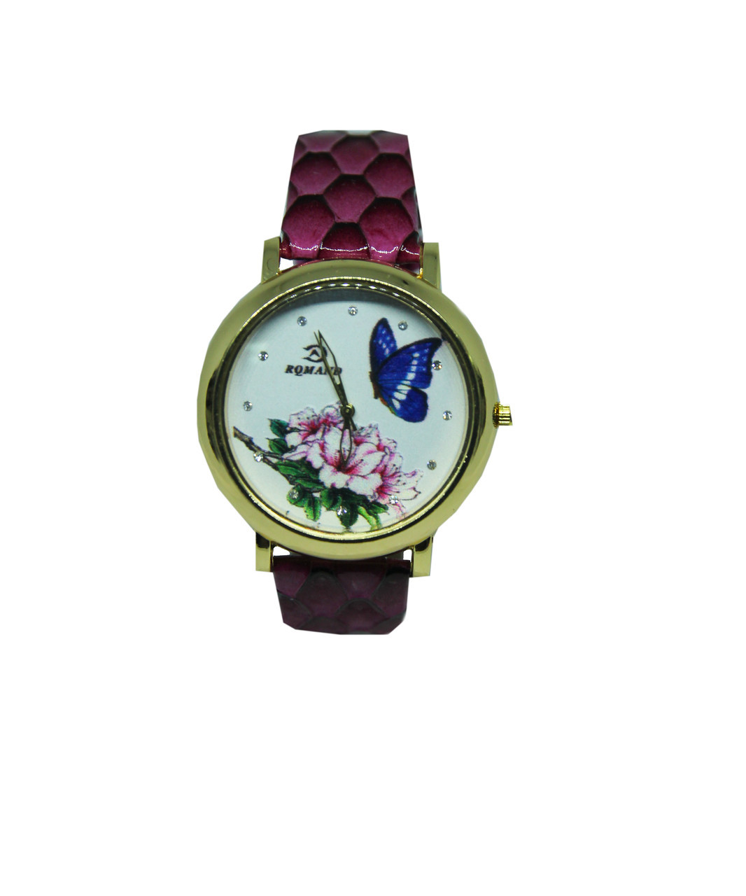 Годинник жіночий кварцовий "Метелик і квітка" Малиновий опт